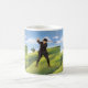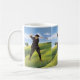 Vintage looking golfer in early 20th century attire taking a swing of his golf club on a watercolour landcaspe . Ideal gift for the golf fanatic or golfer in your life