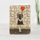 3D digital render of a beautiful teenager girl holding a red balloon in a heart form on a stone wall background, old photo and colorkey effect. Perfect Valentine's day gift