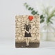 3D digital render of a beautiful teenager girl holding a red balloon in a heart form on a stone wall background, old photo and colorkey effect. Perfect Valentine's day gift