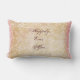 Vintage throw pillow with 'washed out' look in gold and light pink, with the love quote, "happily ever after' in antique script.