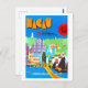 This postcard is a reproduction of a vintage travel poster advertising Macau.