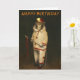 This birthday card is illustrated with a vintage magic monkey dressed as a clown.