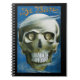 This vintage magic poster has a giant skull with two faces in the eye sockets and smoke swirling around. The initials AB are superimposed in the nose socket and "de Biere the Mysterious" is written were the teeth should be.