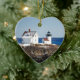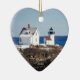 Vintage Maine Ocean Lighthouse Ceramic Ornament. This design features the classic Curtis Island Lighthouse in Camden Harbour with an icing of snow. Personalise for anyone who loves Rustic Maine Cottages and Lighthouses.