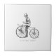 Thoughtful and mechanical, this vintage man on his vintage bicycle is a conversation piece and more.