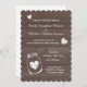 Trendy custom invite template with rustic country chic design. Beautiful artwork for outdoor, barn or garden party marriage. Part of big elegant collection set with more fancy stationery items and pretty accessories. Brown wooden panel background texture pattern with cute faded love hearts and playful masonjar glass design. Customisable scallop cutout shape. Beautiful stylish script typography text template. Add your own names of bride and groom couple.