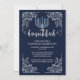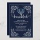 Start your Holiday party off right with our elegant blue Hanukkah Celebration Party Invitation featuring a vintage frame showcasing a light blue menorah set on a navy blue background with modern typography. Make sure all your friends and family members are there to celebrate with you this holiday season! Hanukkah is a favourite time of year for most, be sure to be surrounded by loved ones while making memories that will last a lifetime. graphics©delightful-doodles