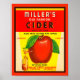 Great quality poster featuring a vintage, 1940's, advertisement for Miller's Old Fashion Cider