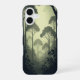 Retro landscape of a tropical forest shrouded in mist, with softened green tones and a nostalgic style.