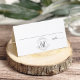 Personalise this elegant, modern, & simple black and white custom guest name folded wedding place card, and place at each dinner place setting at your beautiful reception dinner, featuring space to assign a table # (simple delete if not needed), a custom vintage floral monogram crest and classic calligraphy script typography. Easy to edit double-sided place card template - simply add your wording details and edit, add, delete, move things around by clicking the "edit using design tool" button at the bottom of the "personalise" window. Scroll below to find the full matching wedding stationery collection including: flat place cards, table #'s, dinner menus + menu / place card combo, large seating chart, funny unplugged ceremony sign, welcome sign, wedding invitations, photo save the dates, RSVP card, details card, vintage floral lined return address envelopes, large seating chart sign, and more! Custom design requests and template questions are always welcome - click the "message" button or email direct: contact@figandlilyco.com. Design is lovingly created by Fig and Lily Studios - sending blessings and thanks for being here with us ♥