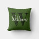 Vintage monogram forest green 16 inch standard cotton zippered Throw Pillow. Personalised cushions monogrammed with your own custom family name and initial letter. Custom text and colours. Elegant script typography template design. Trendy home decor idea for sofa, couch or bed. Make your own for bedroom, office, man cave, living area, lake house, beach home etc. Hand lettered font design. Available in standard and extra large size. Also available as outdoor cushion.