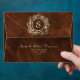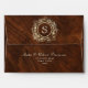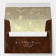 This stunning wedding envelope features a rich woodgrain texture with an elegant floral gold monogram and delicate script for the return address. A coordinating metallic floral liner adds charm and sophistication. Ideal for vintage, rustic, or fall wedding themes, this envelope pairs beautifully with formal invitations and all-in-one suites. Designed for 5x7 invitation cards and fully customisable with names and address details.
