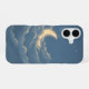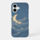 Retro night scene featuring a soft moon surrounded by clouds in soothing bluish tones.