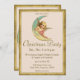 Vintage angel on an crescent moon and a gold trimmed border holiday invitation.