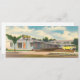 Vintage illustration travel and transportation image featuring the fabulous vacation spot of the Golden West Lodge, a classic example of a 1950s motel. A palm tree is by the office and an antique car is in the parking lot. Time for a road trip!