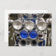 A photographic design of a vintage motor scooter covered in lights and horns.