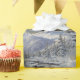 A beautiful vintage painting of a mountain landscape covered in snow makes lovely wrapping paper for your holiday gifts.