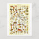 This postcard features a reproduction of a vintage botanical illustration of various mushrooms. The artist is Adolphe Millot, who is known for his educational classroom posters/charts.