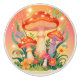 A knob for a dresser, cabinet or dresser drawer with an a cute retro cottage core pattern with red mushrooms and flowers.
