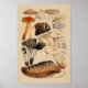 Vintage 1860 botanical illustration of a variety of mushrooms. Red and brown.