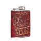 The flask itself is fine. It’s a cheap flask, obviously bought in bulk, however am prepared to overlook that. Given that it is a personalized item, I would have liked to have seen gift boxing instead of the generic packaging. Terrible printing, and/or quality. It’s a cheap, tacky vinyl. It is not cut straight and is also applied in a way that it is overhanging the bottom, causing the glue to catch on items and it will eventually roll and tear, damaging the wrap.