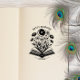 Custom vintage Ex Libris Stamp features book with flowers and celestial elements silhouettes emerging in classic sans-serif fonts. Personalise these beautiful custom ex libris rubber stamps with your name.