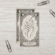 The design features an elegant mystical illustration of a manicured hand and nail polish brush framed by ornate tarot-inspired details, creating a unique celestial aesthetic that stands out from traditional salon business cards.