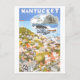 This postcard is a reproduction of a vintage lithograph travel poster for Nantucket.