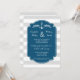 Custom template engagement party invitations with wide vintage light grey and white stripes pattern, rustic navy blue frame, and nautical details. Fully customisable with your engagement party details. Also available in a wide range of matching wedding products.