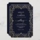 Vintage Navy Blue and Lace Wedding Invitation