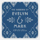 Add sophisticated vintage flair to your wedding favours with this navy and silver art deco monogram square sticker. Ornate geometric and botanical art deco motifs frame "The Wedding Of" with the couple's names and date in silver typography against a rich navy blue background. The elegant navy and silver palette brings a refined twist to classic 1920s styling. Ideal for favour bags, gift boxes, wine bottles, or envelope seals. All text is fully customisable.