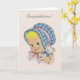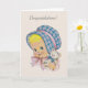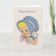 Retro / Vintage New Baby card. Adorable little baby girl with her teddy bear! Congratulations! Perfect welcome for a new addition!
