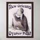 Vintage style man eating oyster. Used for New Orleans oyster festival, can be personalised or placed on other items.