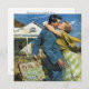Vintage illustration love and romance image featuring a young couple kissing. A kiss to seal the deal and celebrate the purchase of their new home. A slight fixer upper. Great housewarming gift!