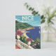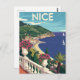 Capture the chic elegance of the French Riviera with this vintage-style postcard featuring the stunning coastline of Nice. The artwork showcases the iconic Promenade des Anglais, beautiful villas, and the deep blue waters of the Mediterranean Sea, all framed by vibrant flowers and palm trees. This stylised travel poster evokes a classic, sun-soaked holiday, making it perfect for a vacation souvenir, a note to a friend, or a beautiful piece of retro art for your home.