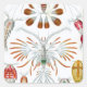 Vintage illustration marine life biology design by Ernst Haeckel. This image features a variety of copepods animals which are small crustaceans that can be found in the oceans and in most freshwater habitats as well. Some species are planktonic while some are benthic.
