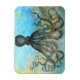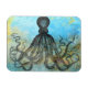 Vintage octopus illustration overlay on aqua and gold abstract background