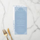 Send a traditional and classic wedding card insert with these romantic Vintage Old Money Dusty Blue Elegant Wedding Menus that exude the perfect combination of ornate design with a coastal chic and shabby chic aesthetic with blue and white accents. Versatile design is perfect for the couple that is creating a romantic theme with a classic combination of script and typography and a slightly retro vintage graphic element. Designed by Simple Desert Designs Studio. Message us for more customised colours to match your specific hue.