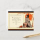 A lovely, vintage illustration, of an old witch, wearing a long cloak, and a hat, playing cards. Next to her, is her black cat, and her broomstick. She is sitting on a tree stump, next to a little fire, that's smoking. Behind her, is a bright orange moon. On the card, it says, " Halloween good wishes. This good dame tells your fortune. And knows it to be true, that father time is holding, just happy things for you." Great for anyone who loves Halloween, witches, black cats, fortune telling stuff, and old vintage greetings.