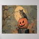 Bring the eerie charm of Halloween to life with this vintage illustration of an owl perched on a jack-o'-lantern under a glowing full moon. The perfect piece to add a nostalgic, spooky touch to your Halloween décor, whether it's displayed on cards, posters, or gifts.