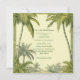 Vintage Palm Tree Destination Wedding Invitation. Perfect for an exotic wedding abroad, this pretty, palm tree, destination wedding invitation will delight any recipient. In 1920's, 1930's, 1930's style illustration in all shades of green. Classy, classic and traditional. The text can be customized and edited.