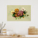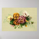 Lovely yellow and purple pansies flower bouquet with green ivy and fern fronds. Cleaned up from a vintage illustration from the Boston Public Library public domain images collection.