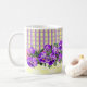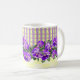 Pansies signify romance, remembrance, and thoughtfulness. They cheer you when you're down. What a great gift this coffee mug would make for your mum or best friend! Personalise it for Mother's Day or a birthday or maybe to cheer someone who is feeling low. Beautiful violets, blues, greens, and pale yellows emphasize the vintage appeal. Pair this with other mugs in the Vintage Floral collection. See other coordinates in party ware and reusable melamine! Be sure to watch for more designs to be added!