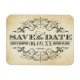 A richly typographic save the date magnet set against a warm aged parchment texture, featuring an intricate black Victorian scrollwork flourish frame and bold mixed-serif typography. The antique, heirloom-quality feel makes this design a natural fit for heritage-inspired, rustic, or formal wedding celebrations. All names and date are fully editable.