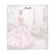 Lady standing near a window looking at the Eiffel Tower. Customizable name.