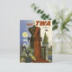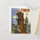 This is a postcard with a vintage airline poster and advertisement for Paris, France.