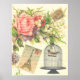 Vintage Paris France Eiffel Tower, Flowers and Bird Cage