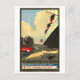 This postcard is a reproduction of a vintage travel poster showing the train and ship route from New York to Paris via Havre.
