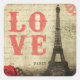 Vintage Eiffel Tower image in Paris, France. An old French love letter is faded in the background.
