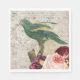 A parrot and flowers over a vintage newsprint background and a white damask accent.